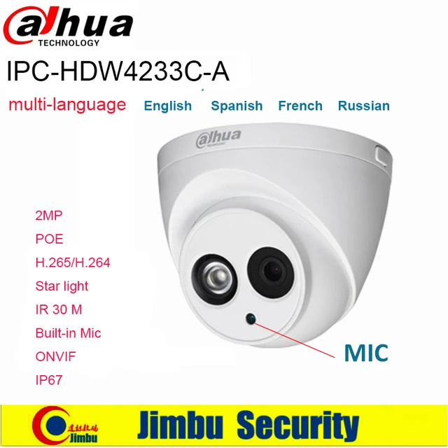 Best Price Dahua 2MP IP Camera multi-language IPC-HDW4233C-A Starlight PoE H.265 H.264 Built in Mic IR30m Netw with Free Shipping Worldwide!