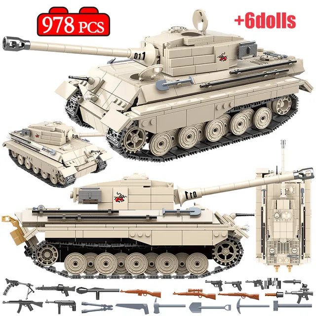 OVERVIEW Product 978pcs German WW2 Tiger King Tank Building Blocks Legoing Military Tank Army Soldier Weapon Figures