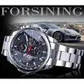 Forsining Three Dial Calendar Stainless Steel Men Mechanical Automatic Wrist Watches Top Brand Luxury Military Sport Male Clock